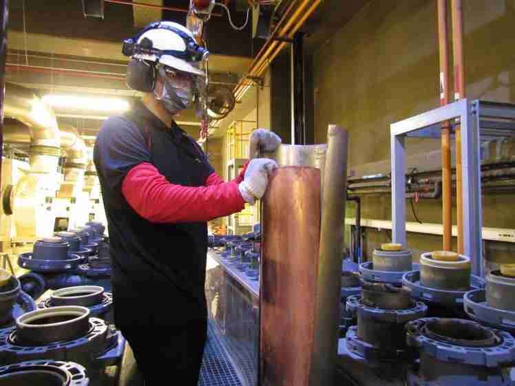 彩霸王将废弃物转化成有效的工业或民生原物料,,图为废铜液淬炼后再制成纯度极高的铜管
