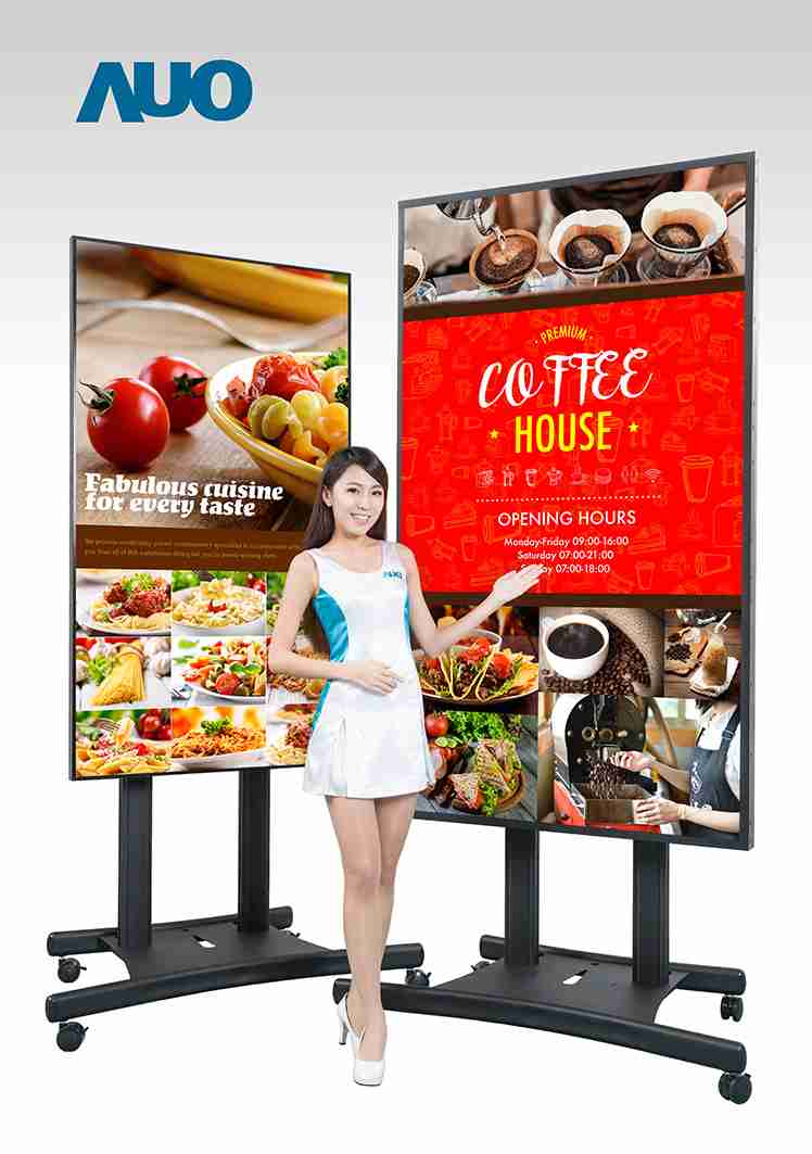 本次领先业界(*) 推出 85寸 UHD 4K 户外型超大显示器,,具备 2500 nits 超高亮度和连续开机操作的稳定性能,,,,在阳光直射环境下影像仍然鲜明清晰,,,,适合户外候车亭及高级精品店等广告播放使用。。。55寸 Full HD 拼接墙显示器的极窄边框技术,,让相邻屏幕拼接后的边框宽度仅 1.8mm,,,能因应各种空间灵活设计为不规则拼接墙,,,,搭配色彩及亮度调校技术呈现完美的画面均匀度,,,打造独一无二的品牌形象广告。。本次也将展出一系列的超宽型公共讯息显示器,,,尺寸从 28.6寸至 42寸,,皆具备高解析、、、、高亮度、、、、高信赖性等特色,,可配置于半户外环境,,,作为交通信息显示器提供旅客实时候车信息及广告讯息、、、、于零售商店展示超宽型广告,,,或打造成智能商店货架以互动感应设计呈现商品讯息,,,增加消费者购物乐趣。。。