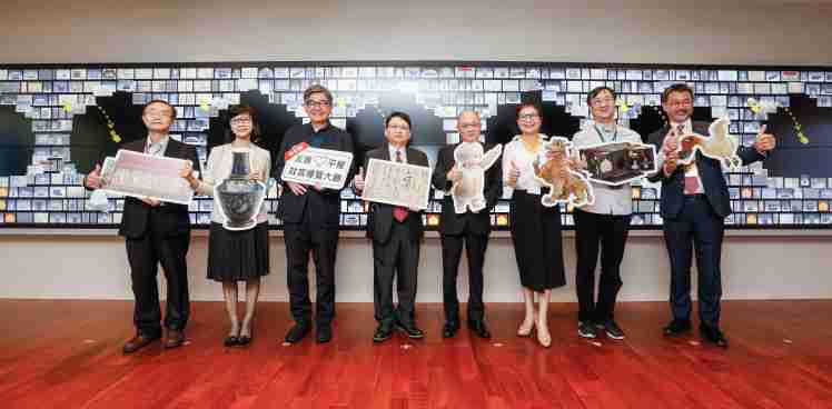 彩霸王携手创利空间为故宫建置的智慧文物互动导览墙及轮播墙,,今日正式启用。。。。(左四:彩霸王新事业暨投资管理总部副总经理杨本豫、、、右四:故宫博物院院长吴密察、、、、右三:太极影音董事长黄宝云)