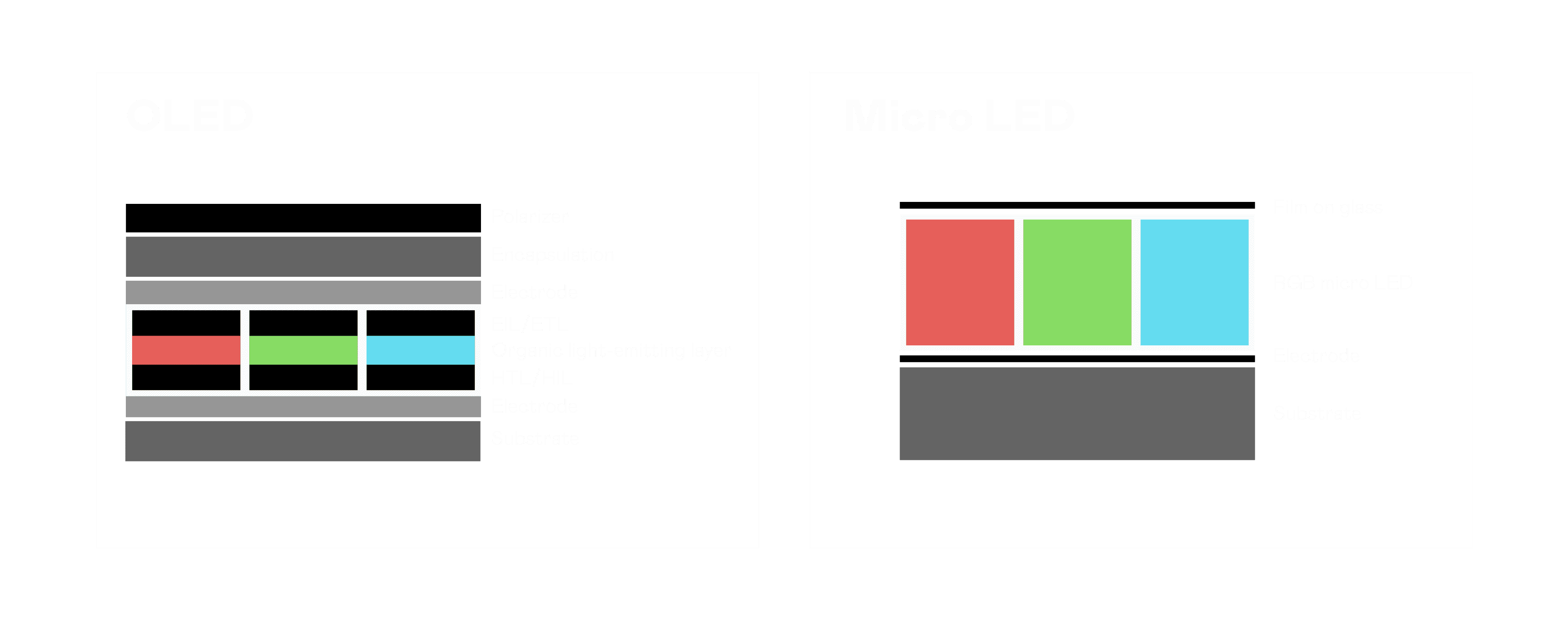 以 LED 做为显示画素,,可让 LED 的发光效率发挥到极致,,从而让显示器具备优异的亮度表现,,,不论是在户外或室内,,,均具备出众的显示效果。。同时,,,与使用有机材料的 OLED 相比,,LED 具备更稳定、、、寿命更长的特性,,,,不仅不会有画面烙印问题,,而且更不容易出现故障、、坏点。。