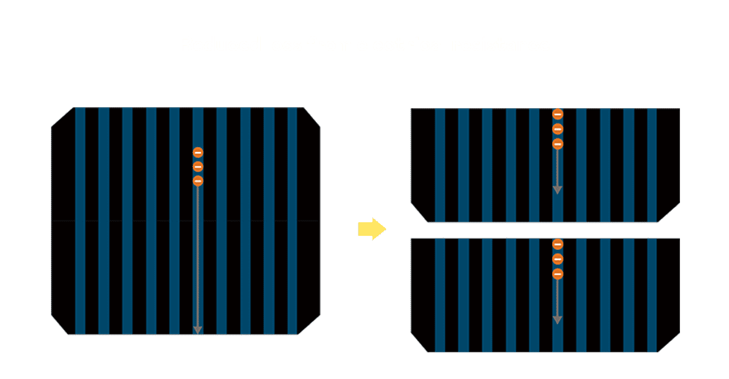 • 多条电极栅结构,,可有效降低外力对于电池的影响,,限制电池隐裂 (Micro-cracks) 范围,,,防止电流传输路径 (Current distribution) 之损坏进一步扩大。。
